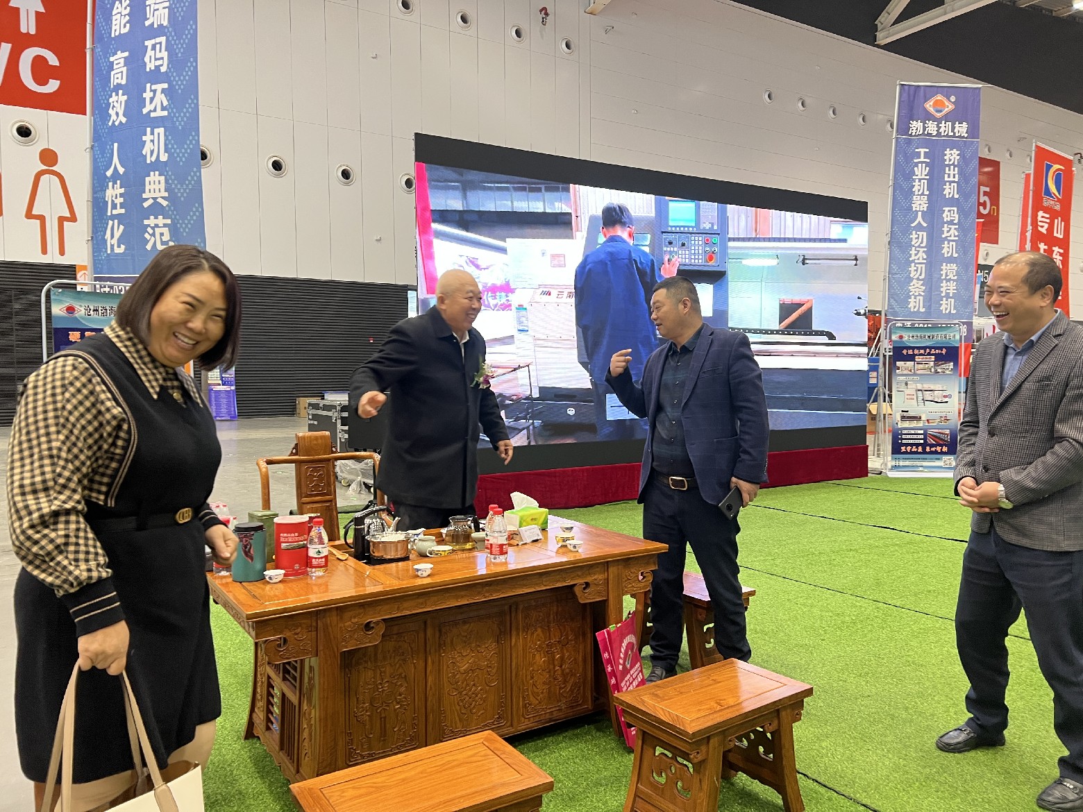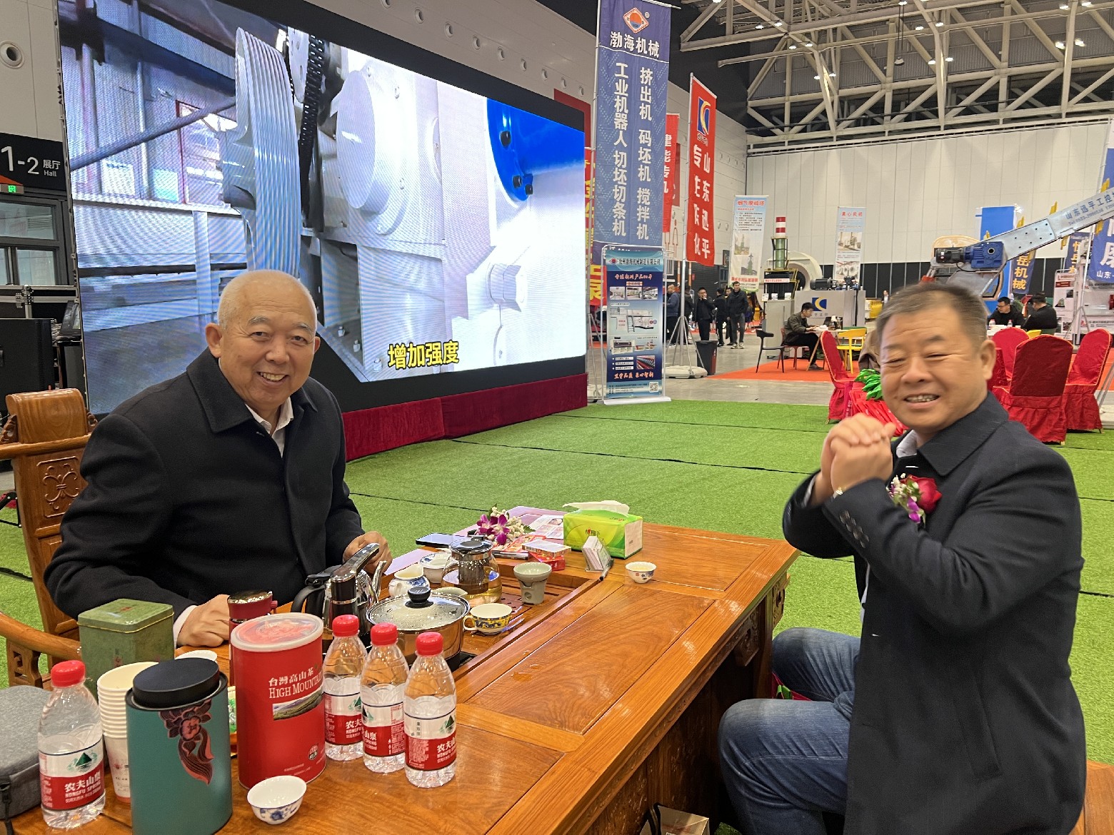 行業領導來到渤海機械的展廳,和董事長張加祥合影并進行親切交談,對我公司的一直以來的工作予以肯定,希望渤海機械作為磚瓦裝備生產制造的資深企業,再接再厲,繼續為行業的發展做出突出的貢獻。